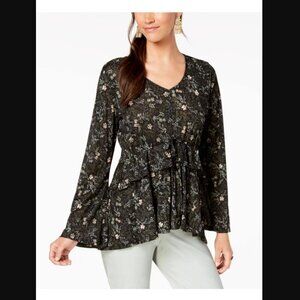 STYLE CO Black Mesh Floral Ruffle Blouse