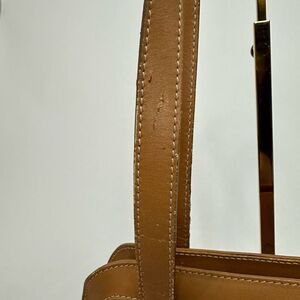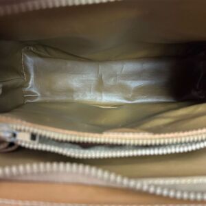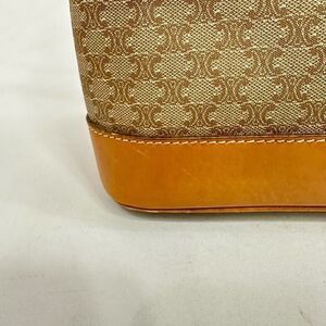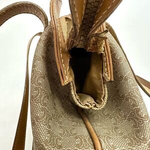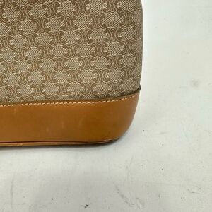 Vintage Celine Tote bag is monogram coated canvas with leather trim and has brass hardware, the logo embossed on front, double leather straps and zipper closure. There is some wear throughout the leather, including a small stain on the front near the logo, and there is a minor tear near the end of the zipper (refer to pics), but the bag is completely functional. This is a vintage, pre-owned item with basic wear and fade. Please refer to the pictures and size measurements.