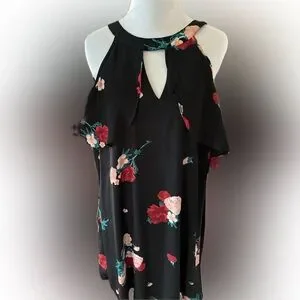 Adorable flowered cold shoulder dress EUC