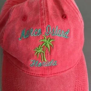 Must have Marco Island, Florida hat. Perfect pink shade with velcro back.