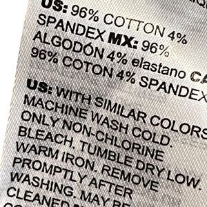 This is a Chico's women's button-down shirt in a mustard yellow color, featuring long sleeves with French cuffs and a collared neckline. The shirt is made of a stretchy blend of spandex and cotton, ensuring a comfortable fit. It is designed with a classic/fitted sleeve type and a button closure. This versatile top is suitable for various occasions including travel, casual outings, and business settings, making it a stylish and practical addition to any wardrobe.