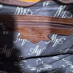 American West Annie's Secret Collection Concealed Carry Shoulder Bag in brown and turquoise tooled leather.