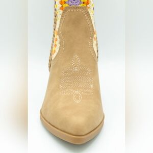 DV Dolce Karyn Crochet Booties for Women in Tan. These booties feature a beautiful crochet design in a trendy tan color.