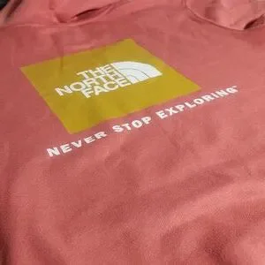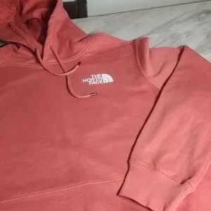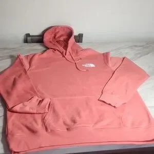 Stylish coral hoodie. Features iconic logo. Comfortable and casual.