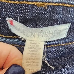 Eileen Fisher Cropped Jeans. Blue. Button & Zipper Fly. 5 Pocket Style. Wide Leg. Cropped Length. Great Preowned Condition. 98% Organic Cotton 2% Spandex. Size 10. Flat Lay Measurements: Waist 16" Rise 10" Inseam 22.5"