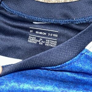 Two Nike dri-fit athletic toddler sets. Both sets have a short sleeve tee with matching shorts. Both are size 3T