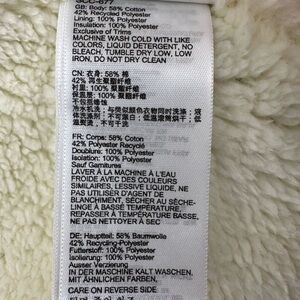 External material: 58% Cotton 58%, 42% Recycled Polyester Heavyweight 6.58 oz/yd | 100% Polyester Sherpa Knit 7.67 oz/yd