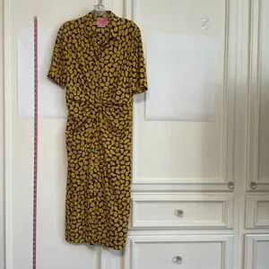 Kate Spade Sunny Bloom Yellow Floral Ruched-Front Shirt Dress 6