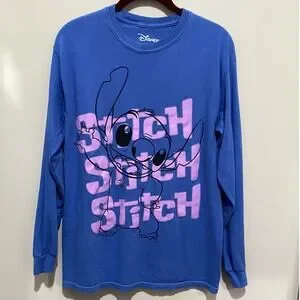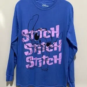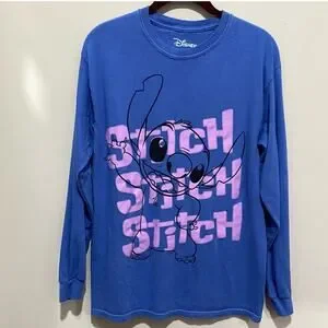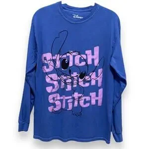 DISNEY Stitch Long Sleeve Tee SIZE MEDIUM Blue Graphic T-Shirt Lilo & Stitch