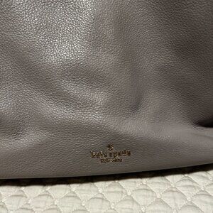 Grey /White sides Leather Tote Bag, good condition. 3 compartments, 2 pockets, middle compartment zippered. Bottom extension-4 1/2 " Side extension-7" WD 16" HGT 12-13 "