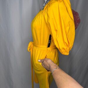 NWR NY & Co. Yellow Belted Square-Neck Poplin Short Romper Size S