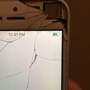 The phone itself works well. Unlocked. There are no problems with charging. There is a harsh crack on the top right hand corner of the phone as well as some other cracks across the screen. Without box & SIM card. All information is erased off the phone. Comes with a cute case!!