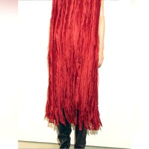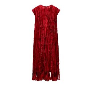 Zara round neck sleeveless midi dress. Ruffle and beating Detail fringe hem and back slit. Black hidden inseam ZIP closure. Currently in store.