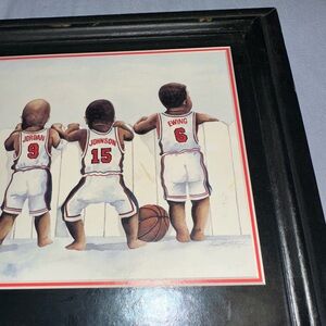 The product is a picture featuring the "Baby Dream Team" from the Olympics, including basketball legends like Michael Jordan, Larry Bird, Magic Johnson, Patrick Ewing, and Charles Barkley. The picture showcases Team U.S.A. in multi-color and is associated with the National Basketball Association (NBA). It is not officially licensed. Created by Kenneth Gatewood, this item is a must-have for basketball fans and collectors.