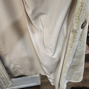 faux fur coat beige Isha gold. need top loop sewn. very comfy . put to pit 20 length 37