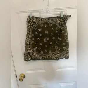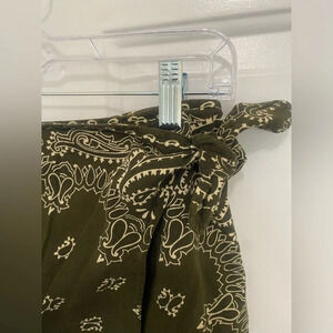 Fun and festive bandana wrap skirt! This vintage piece is an absolute stunner with a great print and easy style. The skirt has two buttons and a side tie for closure. The skirt length and waist measurements are shown.