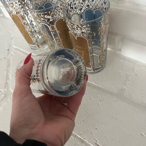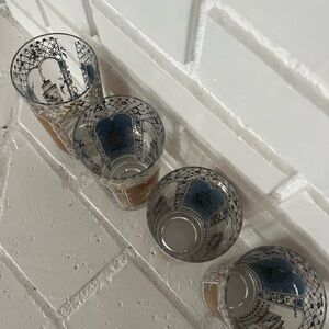 Vintage MCM 22 Karat Gold Rocks Glasses Blue Birdcage Set of 4 Georges Briard
