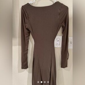 LONG SLEEVE BROWN OH POLLY CUT OUT MINI DRESS