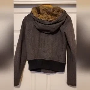 American Eagle Cropped Herringbone Jacket, Size Small. Very comfy and warm for chilly weather. Cute herringbone pattern and faux fur hood. Hits about the top of natural waist/ top of mid rise jeans. No rips or stains. Smoke free pet free home.