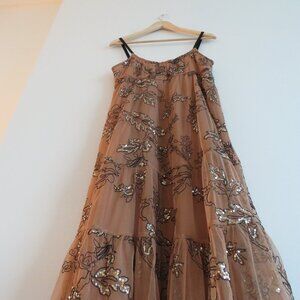 BY ANTHROPOLOGIE Sequined Tulle Midi Dress in Tan Peach - Size S