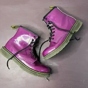 Dr. Martens 1460 Delaney Purple Boots Patent Leather Lace Up Side Zip