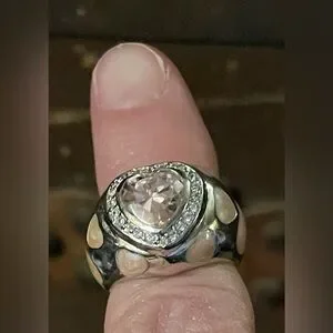 Sterling Silver Ring with Pink Enamel Hearts and Faceted Pink Heart Stones Sz 5