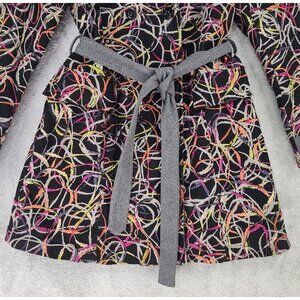Gently used, couple small snags on collar, some spots of lightly loose fabric (might just be part of the pattern), in good condition.