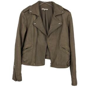 Rebecca Minkoff Wolf Moto Biker Jacket M Asymmetrical Zip Pebbled Leather Stone