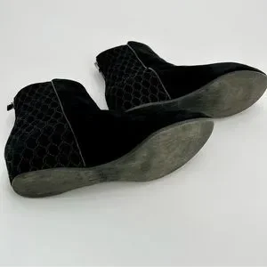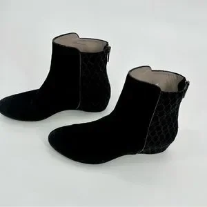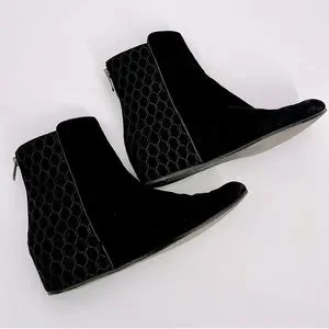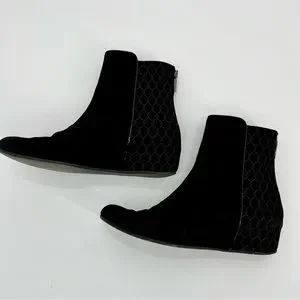 Aquatalia Women Suede Leather Chelsea Boots Black Wedge Heels Booties Size 8.5