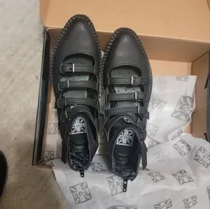 Women's size 6. NWT. T.U.K Black TUKskin™ Multi-Strap Pointed Mary Jane Creeper