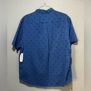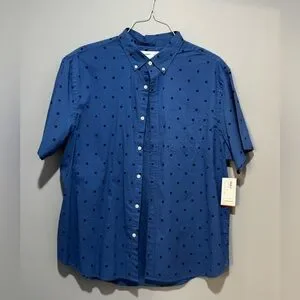 Old Navy Short Sleeve Men’s Button Down. Blue with Navy Polka Dots. XL slim fit built in flex.
