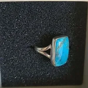 Blue Mojave Turquoise ring in Solid Sterling silver 925. Size 5.5