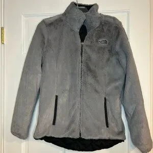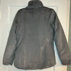 Excellent condition! No signs of wear. Women’s size S. 100% polyester. Can be worn as black slick outside or grey fuzzy outside.
