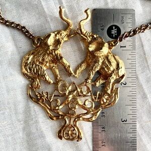 Vintage Elephant Medallion Pendant Necklace Goldtone Oversized
