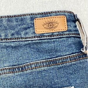 • Features: Destructed details; frayed hem; belt loops; evil eye patch on back