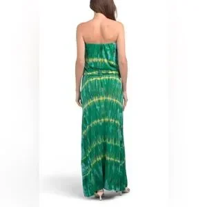 elastic waist and neckline, fabric provides stretch. tie dye pattern