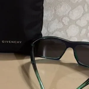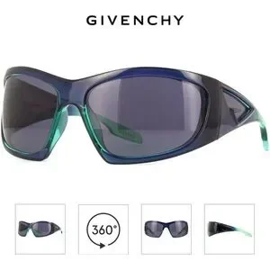 The Givenchy GV40051I sunglasses feature a stylish wrap design with a green acetate frame and gray lenses. These unisex adult sunglasses belong to the designer theme and offer UV400 protection against harmful sun rays. The model exudes a sophisticated and fashion-forward style, making it a great accessory for both men and women looking to elevate their look with a touch of luxury