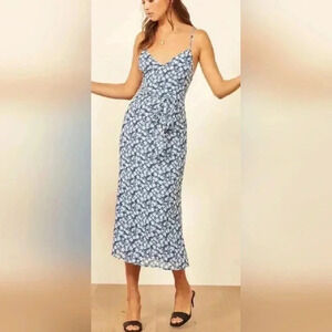 REFORMATION Flourish Ivory Floral Print DIETRICH A-Line Tie Waist Crepe Midi Dress
