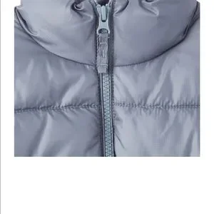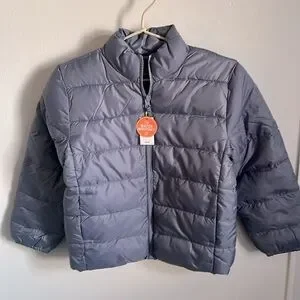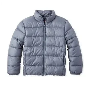 NWT Children’s Place boys puffer jacket. Made of 100% polyester ripstop; water resistant coating. Body lining made of 100% polyester taffeta. Insulated for added warmth. Mock neck, Full zip closure, Side seam pockets, Elasticized sleeve cuffs and hem, Interior locker loop. Color is Dolphin, a sleet blue grey.