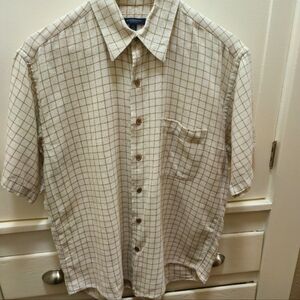 Authentic Burberry checker short sleeve shirt ,cotton & cashmere in size medium, in great condition ( tiny little snag near the bottom hem) white,brown color.