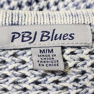 PBJ BLUES Blue Acid Wash Open Knit Ramie Blend Long Sleeve V Neck Top Medium