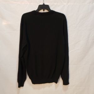 Good used condition. Pit to pit measurement shown. Approximately 28 1/4" total length, back neck to bottom. Sleeve approximately 19 1/2", under pit to wrist. Color: black.