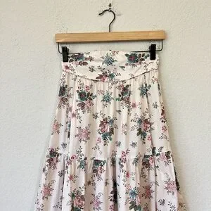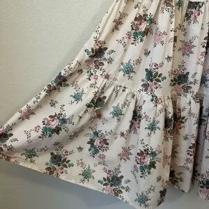 ANNA MASON Maxi Skirt Beige Floral Tiered Flare Cotton Peasant Fairy