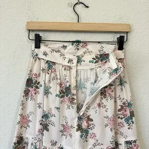 ANNA MASON Maxi Skirt Womens Sz 6 Beige Floral Tiered Flare Cotton Peasant Fairy W10854