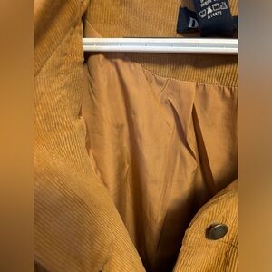 NWT button down corduroy jacket by Denim & Co. This is a beautiful camel color (light brown) perfect for fall! This has a nice satin lining. Other dimensions are noted in photos. Comes from a smoke free home. This has been in storage and was new in the purchased bag, picture shown, I just removed it to take photos.