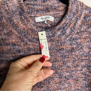 Soft and cozy, this Space-Dyed sweater from Madewell is easy to pair with jeans on a cold day. Features Puff sleeves that are 3/4 length and end is a wide cuff, a slightly slim fit, Heathered knit with blue/purple, pink, salmon. This sweater runs slightly small, could be a medium as well. Check measurements for your fit. NWT. No flaws.