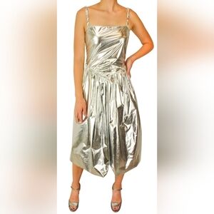 Sz 4 NWT Sandy Liang Nabo metallic dipped waist dress