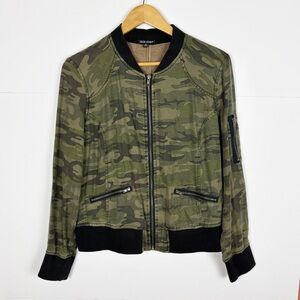 Dear John Casco Camo Bomber Jacket Size Medium Green Black Zip Up Tencel