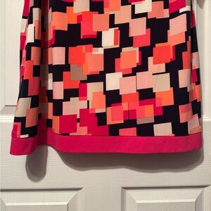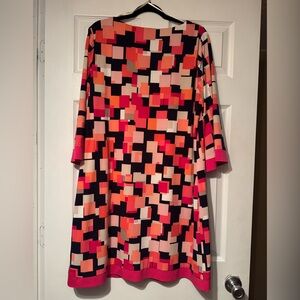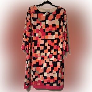 Jessica H Sz 16W Geometric Pattern Pink Navy Coral dress pink trim, fully lined. Excellent like new condition!