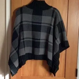 Columbia women’s grey and black plaid knit pattern poncho. Size OS